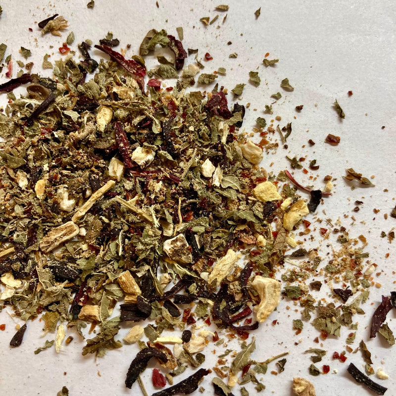 To make a herbal infusion, use 1-2 teaspoons of herb per cup. Place the herbal tea blend in an infuser, teapot or strainer and infuse for 5- 20 minutes, depending on taste. The longer you leave the tea to infuse the more medicinal it will be. Cover your cup while infusing to keep the goodness in. Can be sweetened with honey or raw sugar if liked.